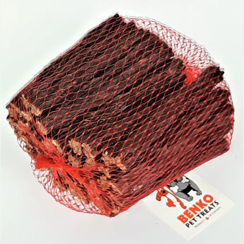 Benko Pet Foods All Natural Beef Sticks with Garlic Treats for Dogs use only fresh ingredients and include zero preservatives. These beef sticks are super palatable and are great for a crunchy treat or a training aid.